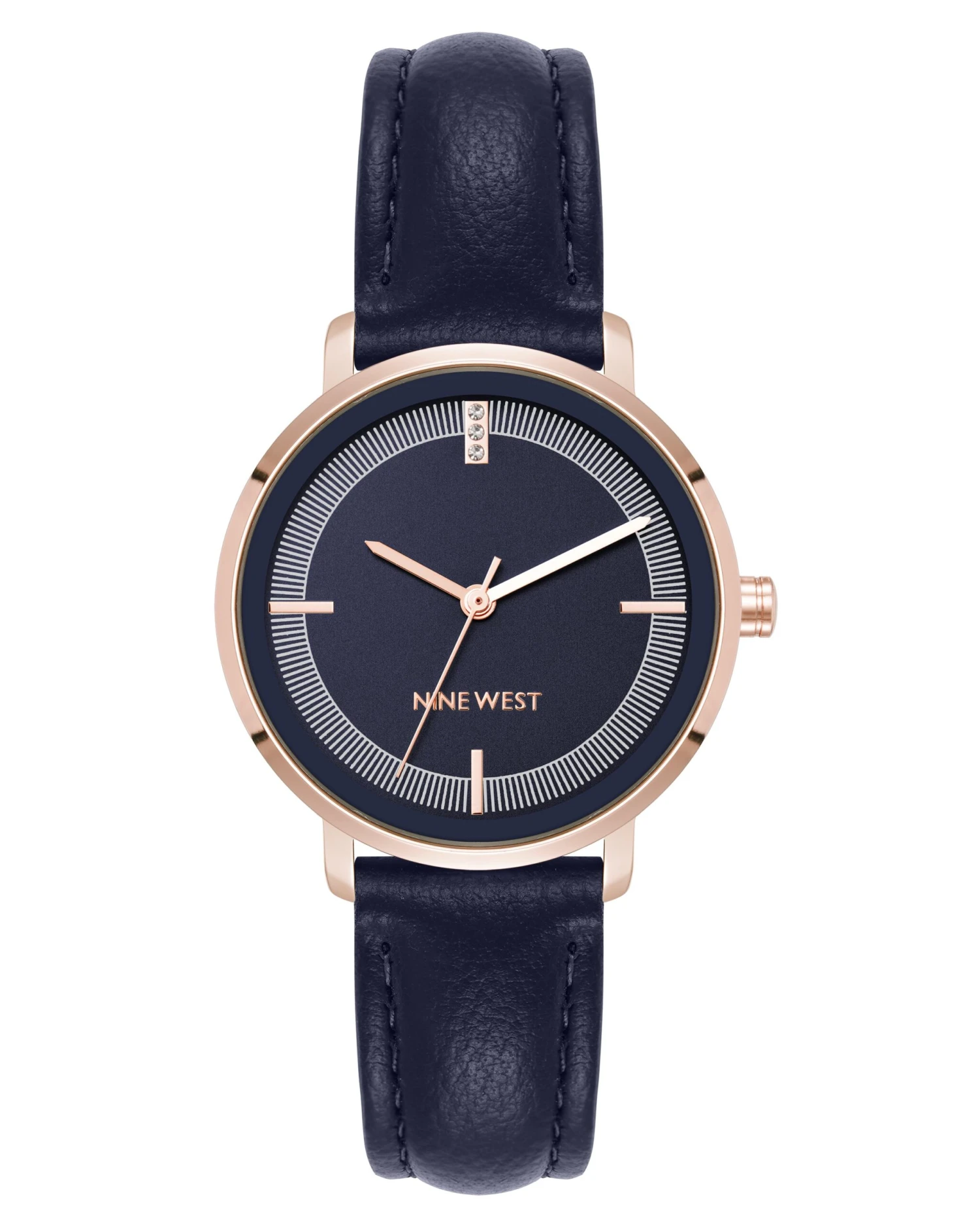 - Dial with crystal accents at the 12 marker